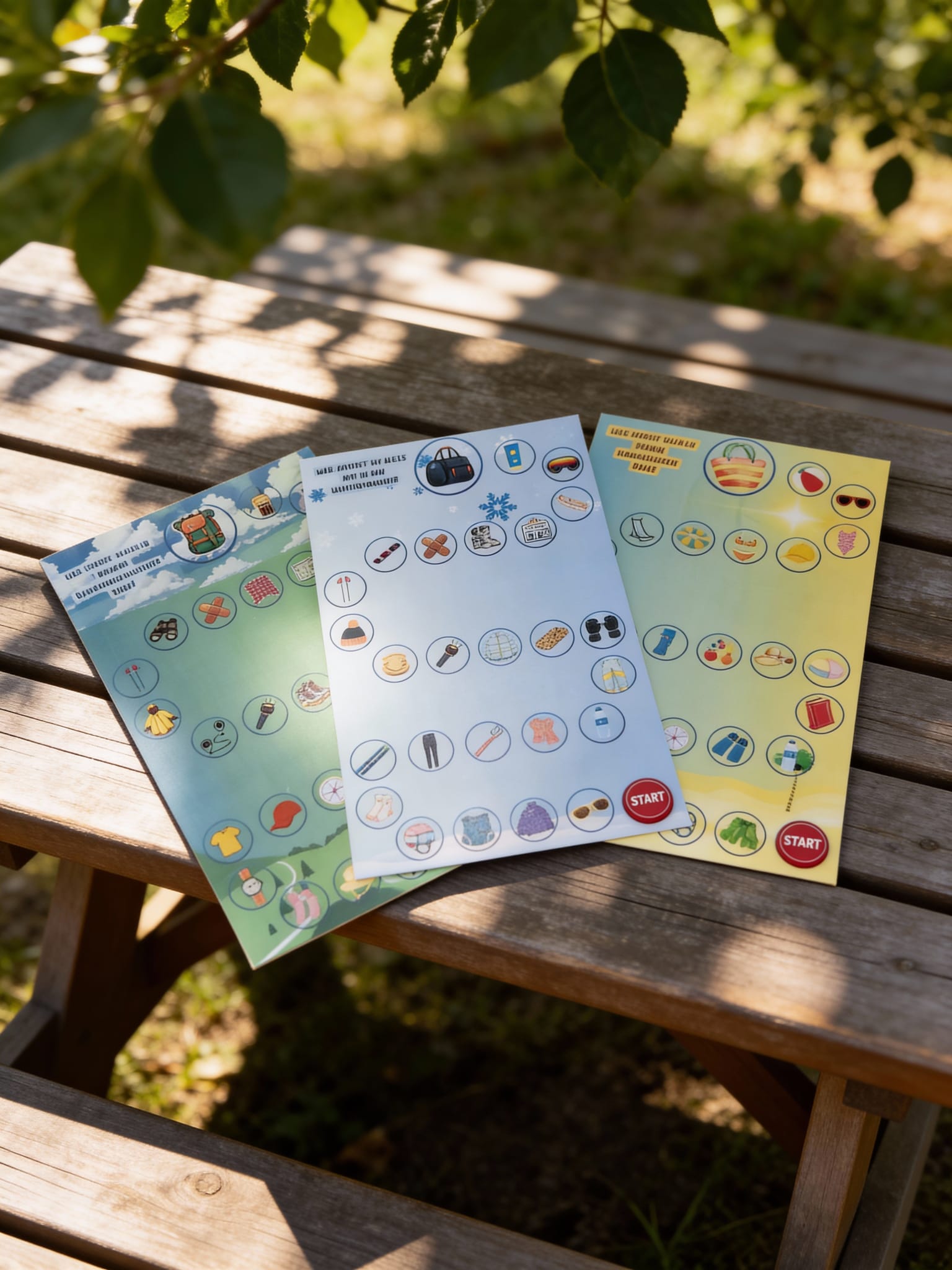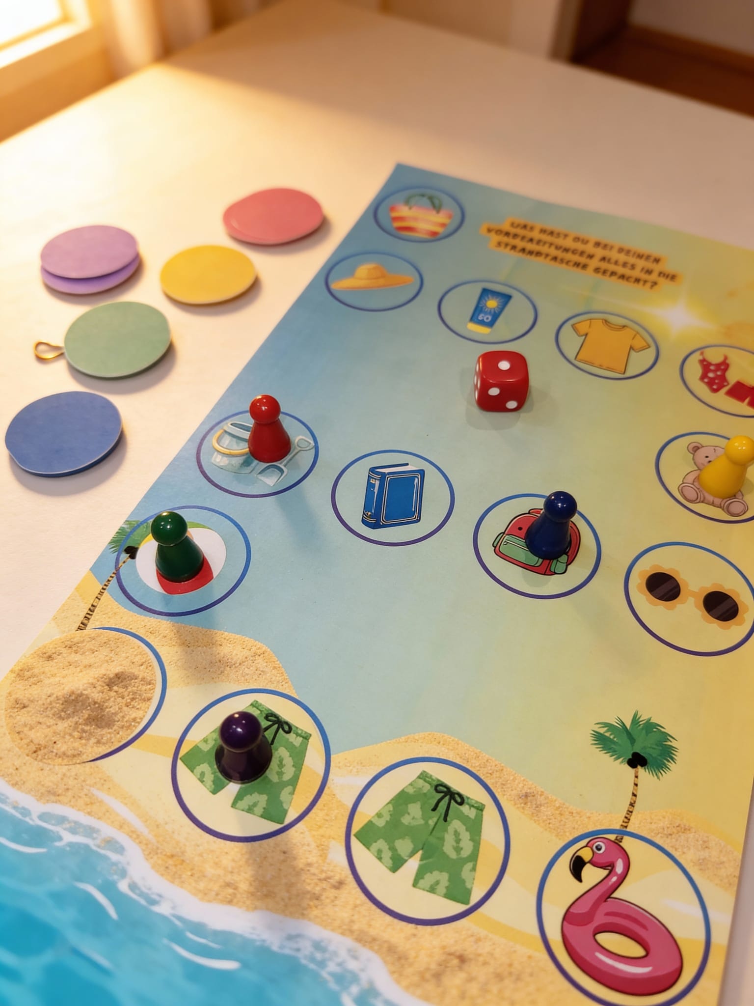 Mimi und Mo – Pack-Parade ist ein liebevoll gestaltetes Print-and-Play-Reisespiel für Kinder ab 3 Jahren. Die Kinder merken sich, welche Gegenstände für eine Reise eingepackt wurden, während diese verdeckt bleiben. Am Ziel der Reise müssen alle gesammelten Dinge richtig benannt werden.